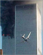 Ahead, as he hurtled across New York towards Manhattan Island, he could see the vast plume of smoke (1). His colleague in Flight 11, approaching from the opposite direction had already made an almost perfect impact on the North Tower of the World Trade Center.