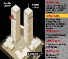They would be detonated after the planes had struck, to ensure the total destruction of the buildings and their evidentiary contents. The bombs inside the towers were strapped to radio-trigger detonators. Other plotters would be near the scene -monitoring TV coverage to determine the right moment to push the final buttons. The full PsyOps (psychological-warfare) effect would be the complete disappearance of these two symbols of US confidence and power.